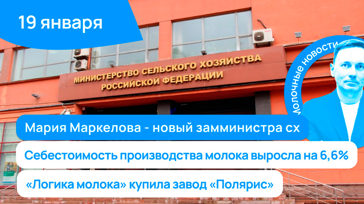 Новости за 5 минут: Мария Маркелова - новый замминистра сх, себестоимость молока выросла на 6,6%, «Логика молока» купила завод «Полярис»